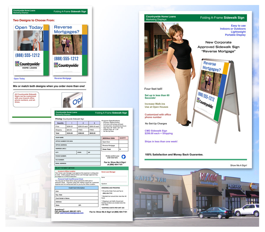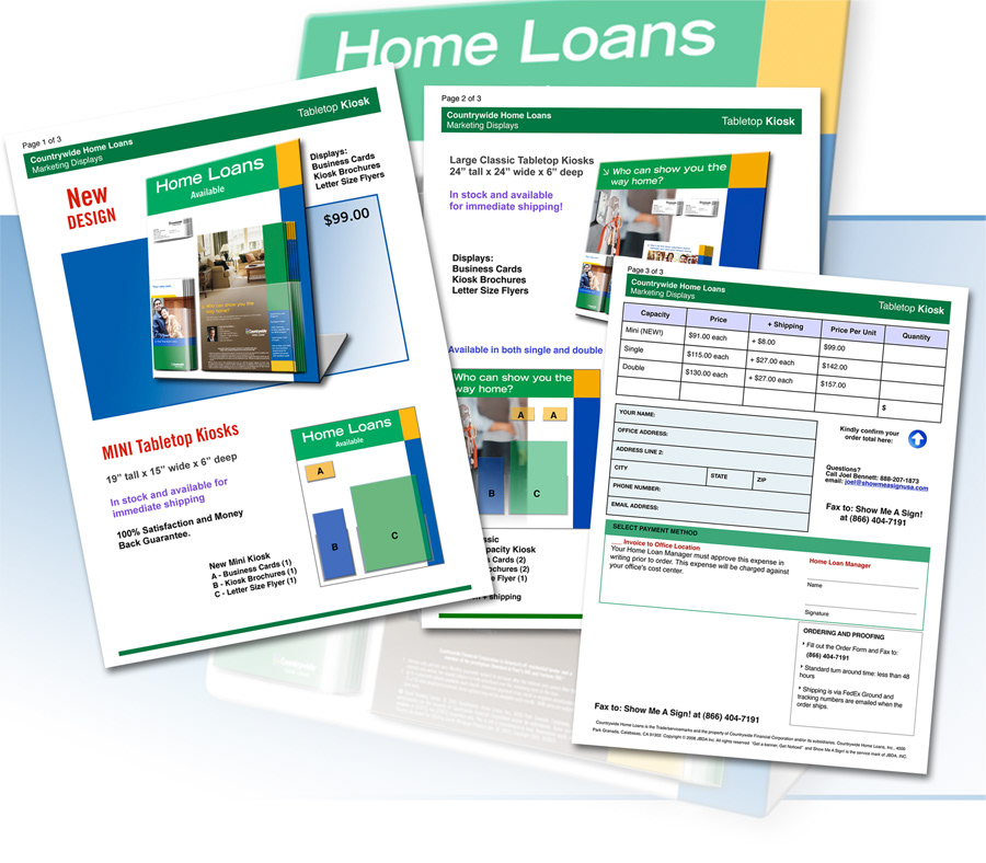 Countrywide Home Loans. Large program of custom printed JIT branded displays and signs.
